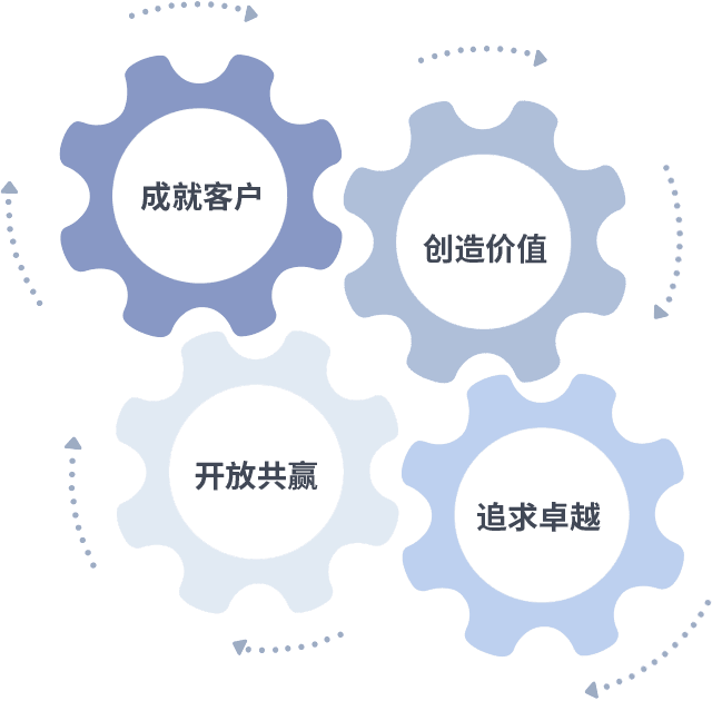 成就客户是一切决策的出发点,,,,创造价值是衡量所有工作的标准,,,追求卓越是极悦娱乐做事做人的态度,,,,开放共赢是极悦娱乐的格局也是最终的结果。。。。价值观的齿轮环环相扣,,推动着组织里的每个人不断向前。。